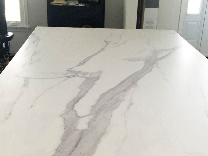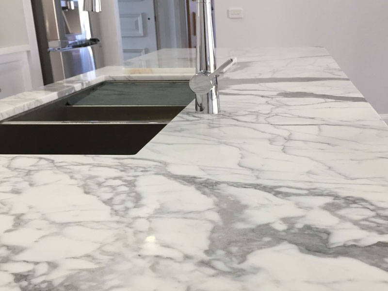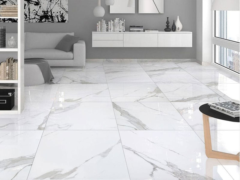 The marble Statuario is a natural white stone with grey inclusions and veins.